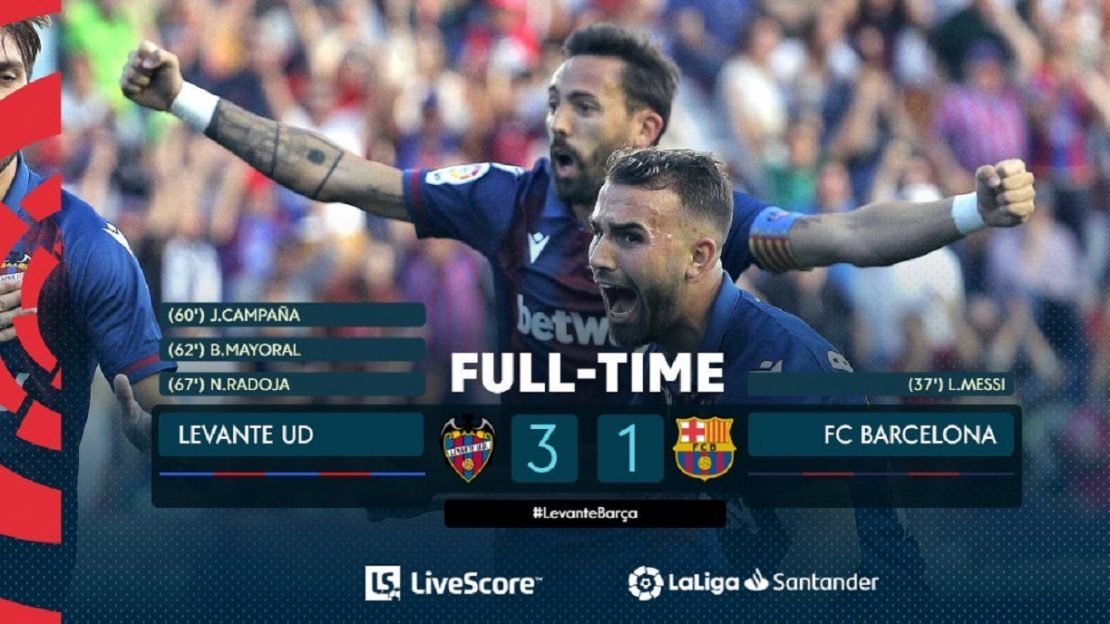 Currently, levante rank 13th, while barcelona hold 3rd position. Nemanja radoja (levante) left footed shot from the centre of the box to the bottom left corner following a set piece situation. Barcelona were mowed down by a rampant levante as their shaky defence and poor away form once again proved their undoing. Levante played against barcelona in 2 matches this season. Jose campana sent them on their way when he equalised in the 61st minute after converting.